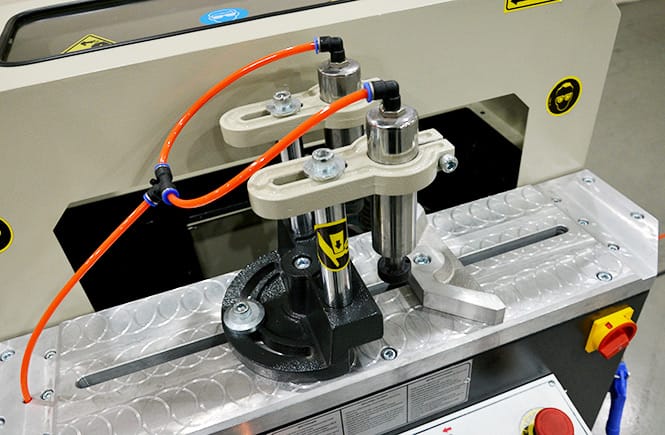 Automatic high-speed end-milling for industrial aluminum and PVC profile processing.