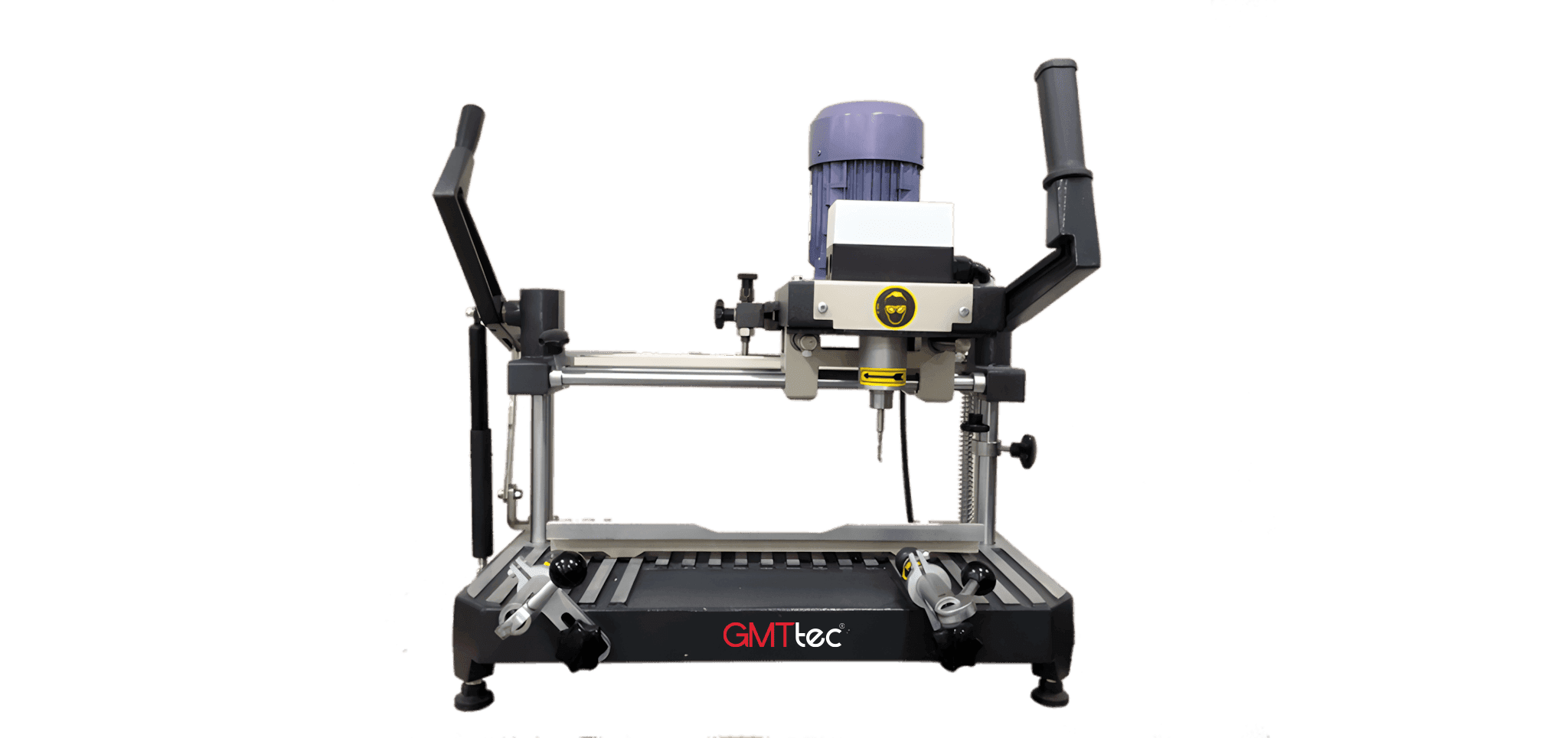 Portable copy routing system designed for lock, handle, and accessory slots in aluminum and PVC profiles.