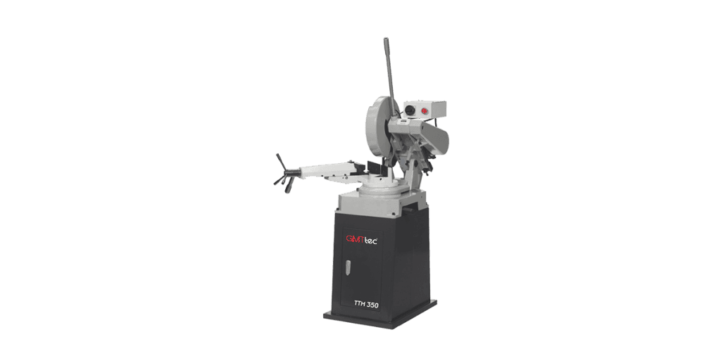 Manual centered cutting via specialized geometry clamping for industrial steel profiles.