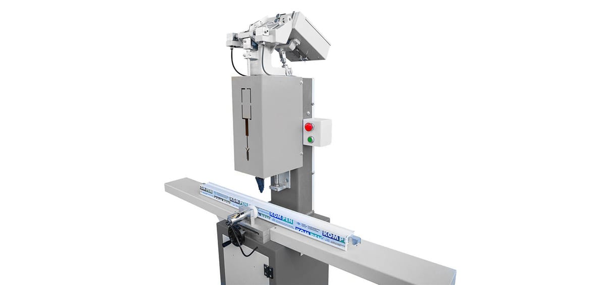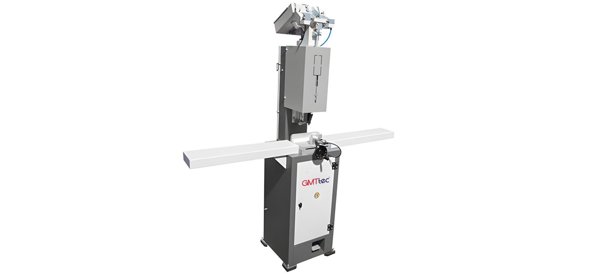 Automatic high-speed steel reinforcement screwing for PVC profiles via integrated feeding system.